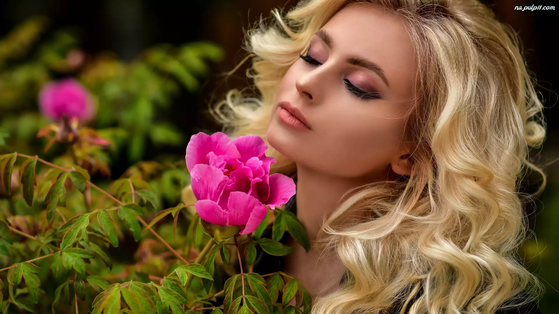 Kwiat, Blondynka, Kobieta, Różowy Na Pulpit
