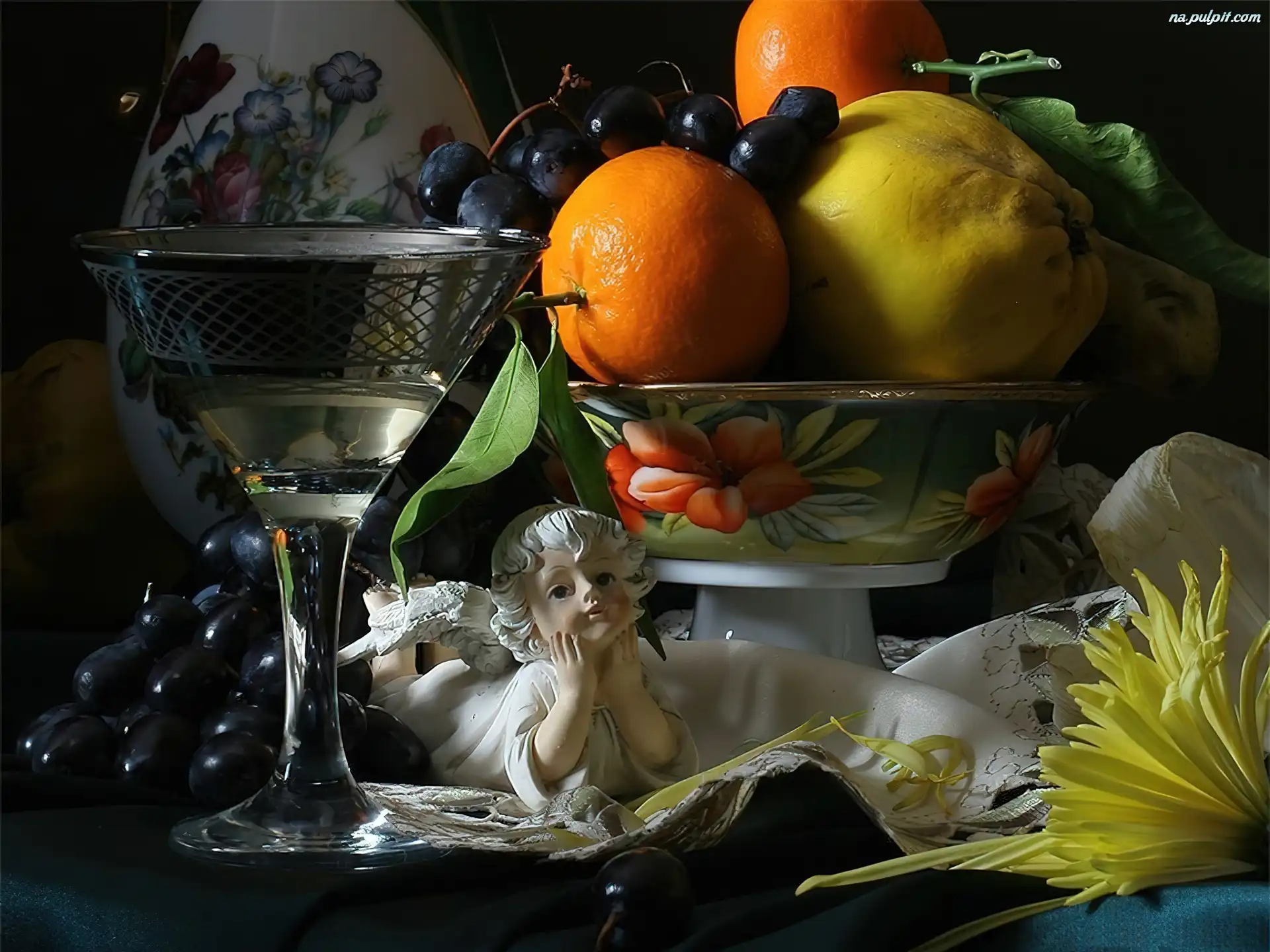 Kwiat, Naczynia, Owoce, Figurka Na Pulpit