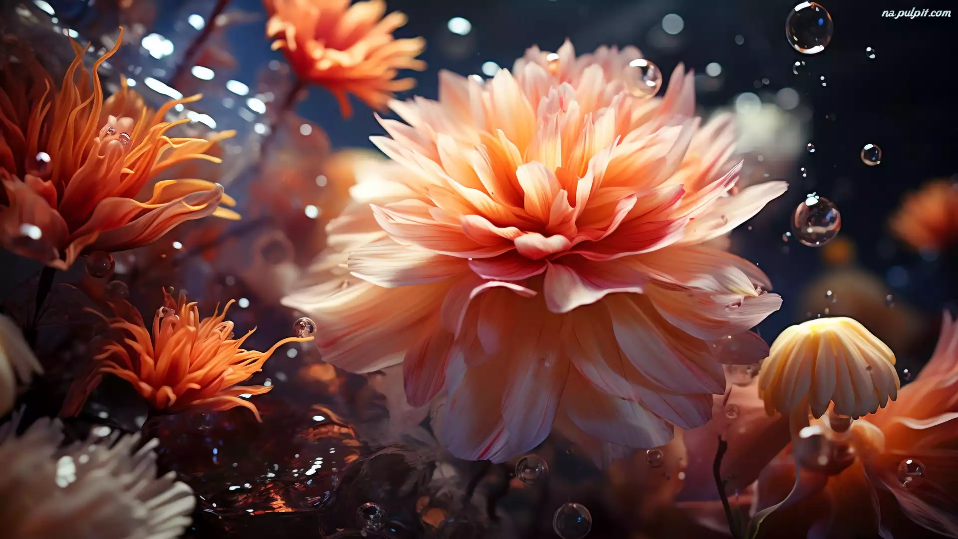 Światło, Kwiat, Pomarańczowy, Grafika, Krople