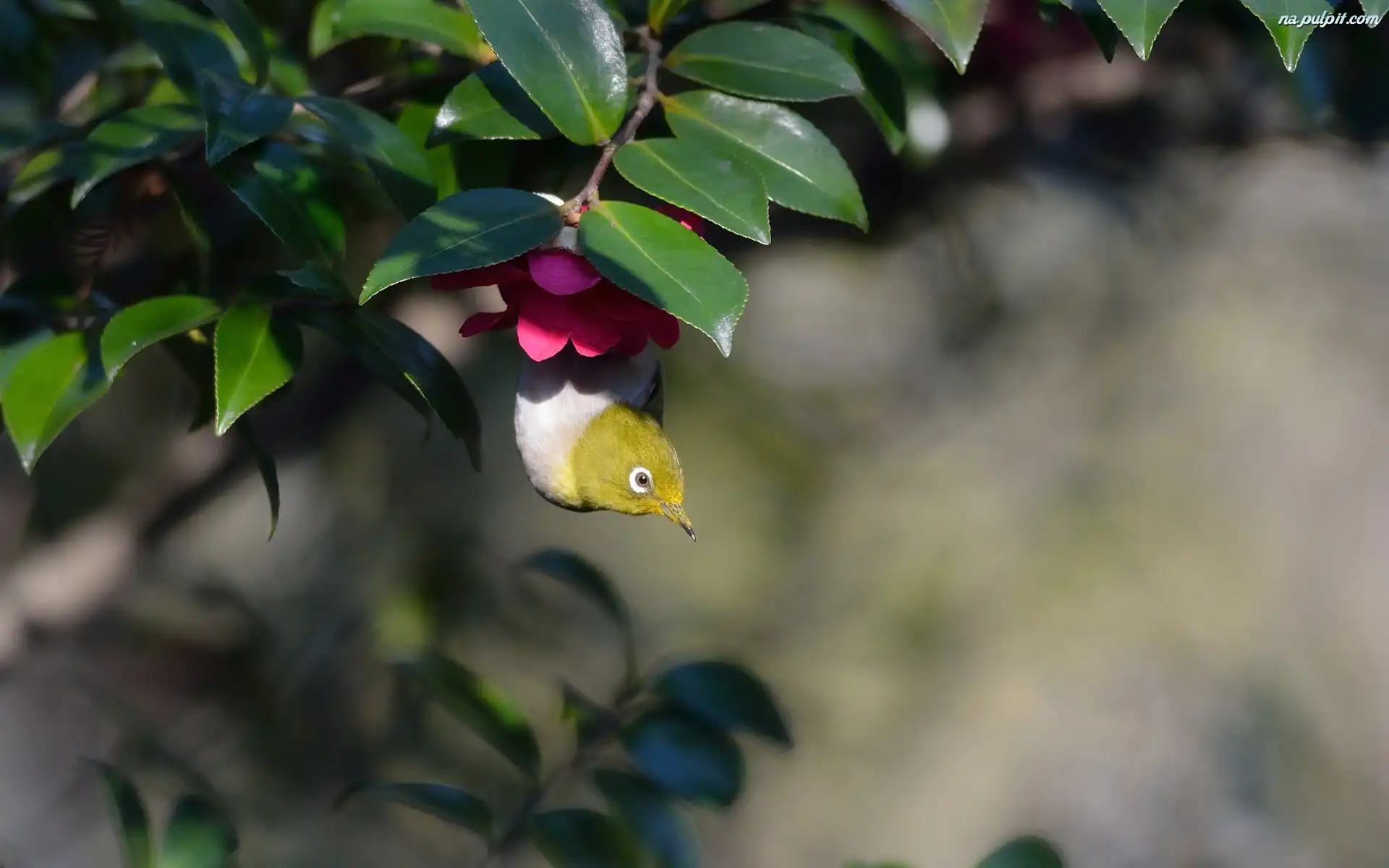 Kwiat, Gałązka, Ptaszek, Bordowy Na Pulpit