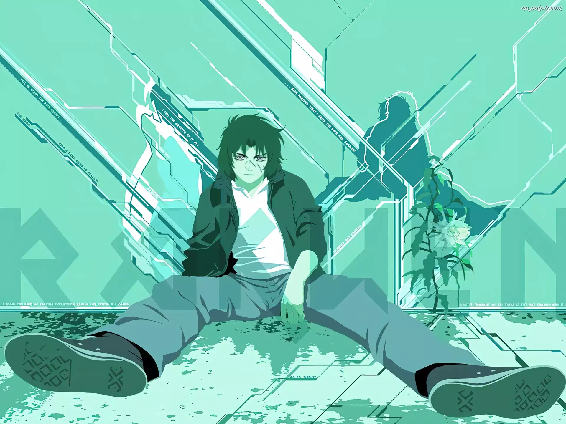 kwiat, chłopak, Wolfs Rain, trampki
