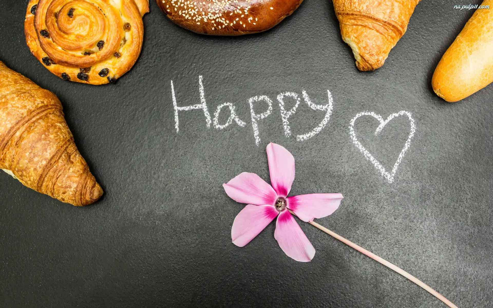 Happy, Kwiat, Rogaliki, Ciastka, Napis Na Pulpit