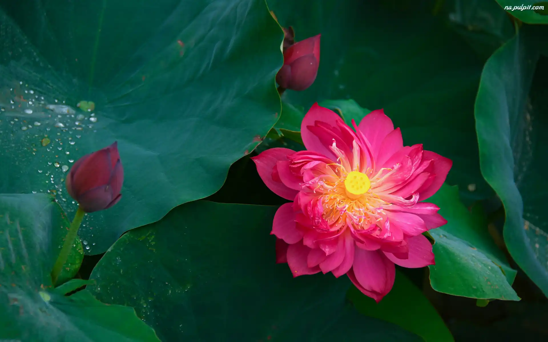 Pąki, Kwiat, Różowy, Liście, Lotos Na Pulpit