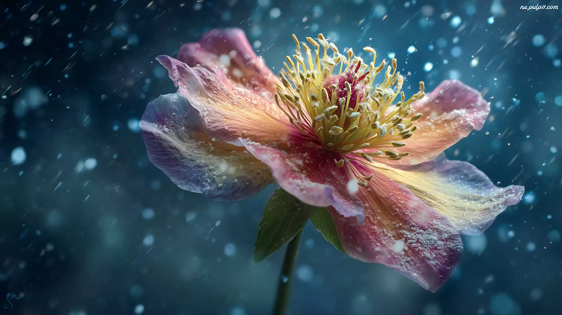 Kolorowy, Kwiat, Śnieg, Grafika AI Na Pulpit