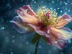 Kolorowy, Kwiat, Śnieg, Grafika AI