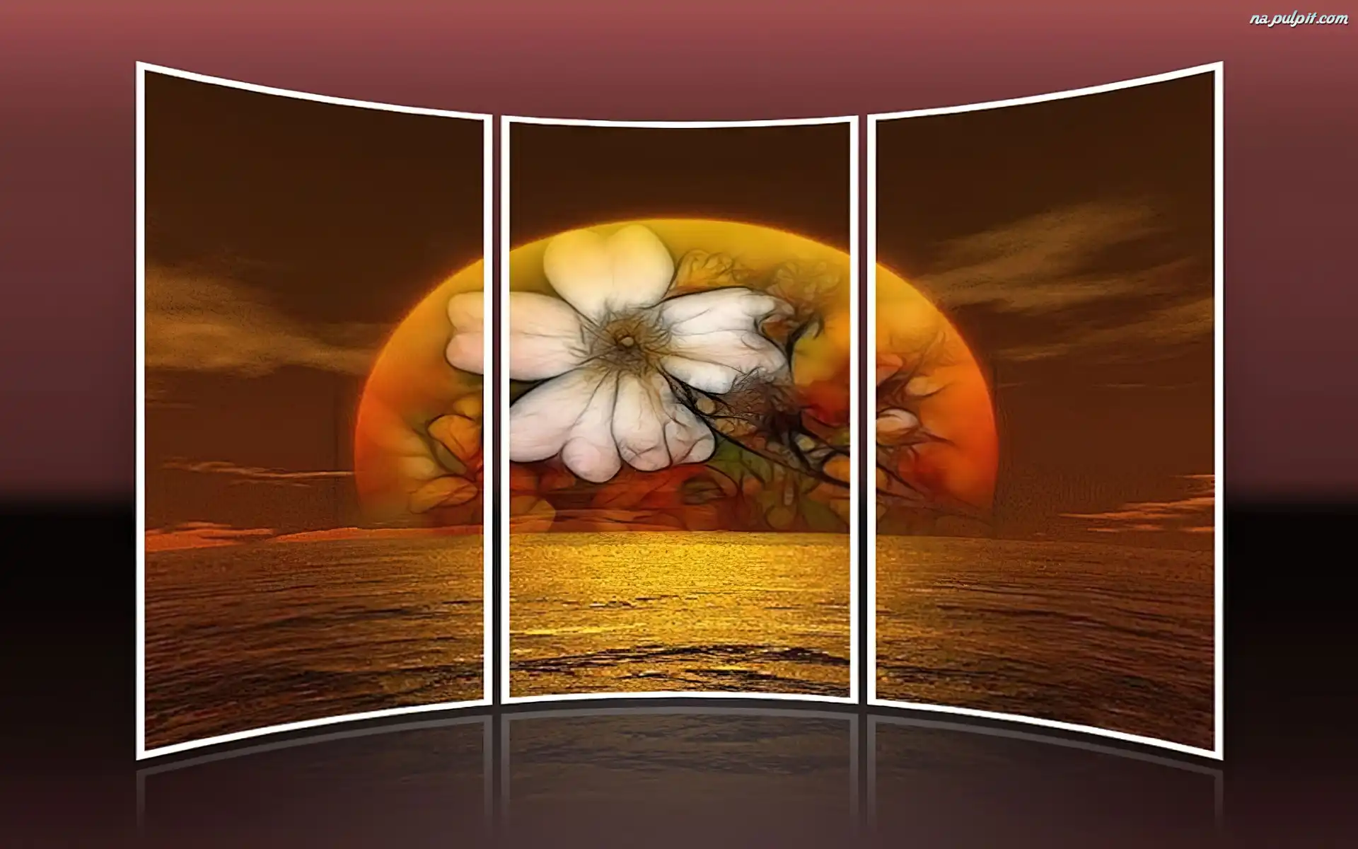 Kwiat, Morze, Słońca, Zachód, Okno Na Pulpit