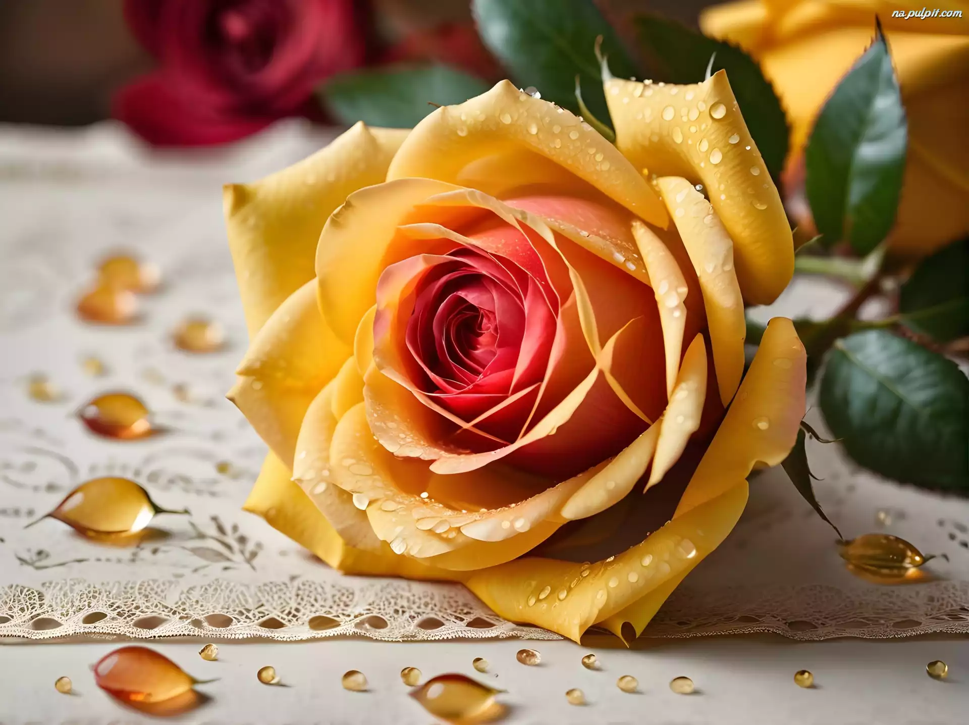 Liście, Kwiat, Żółta, Grafika, Róża Na Pulpit