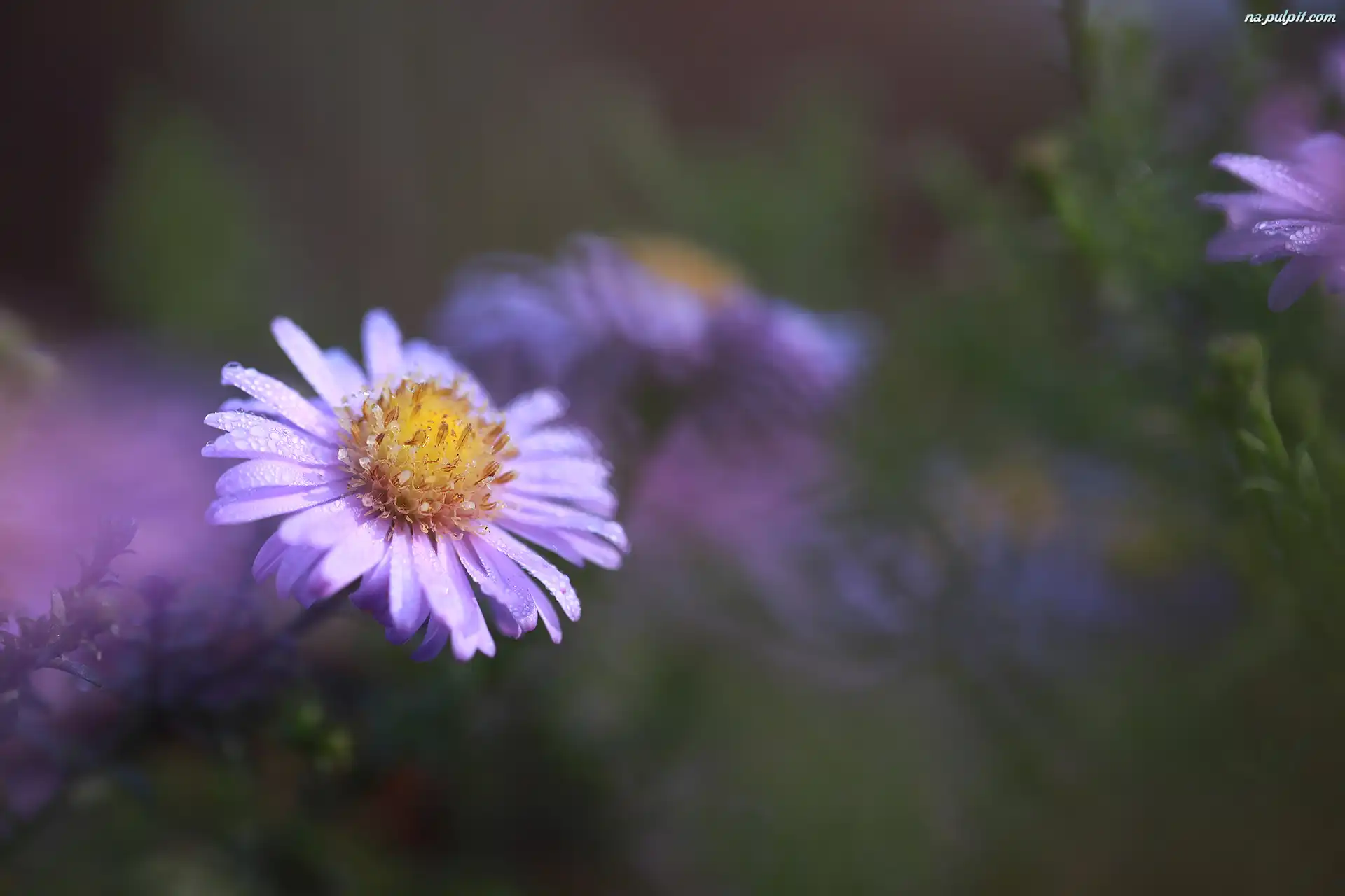 Zroszony, Aster, Liliowy, Kwiat