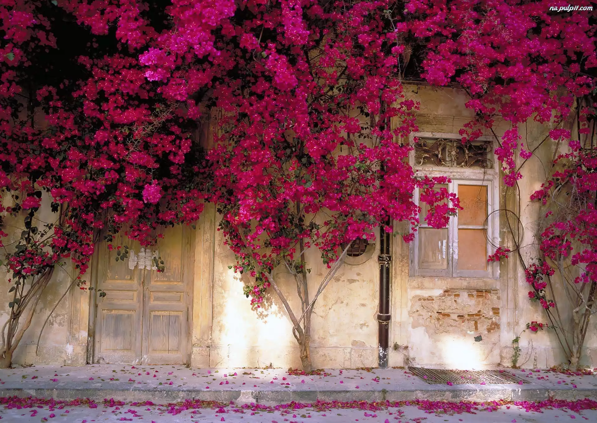 Kwiatami, Domu, Ściana, Pokryta Na Pulpit