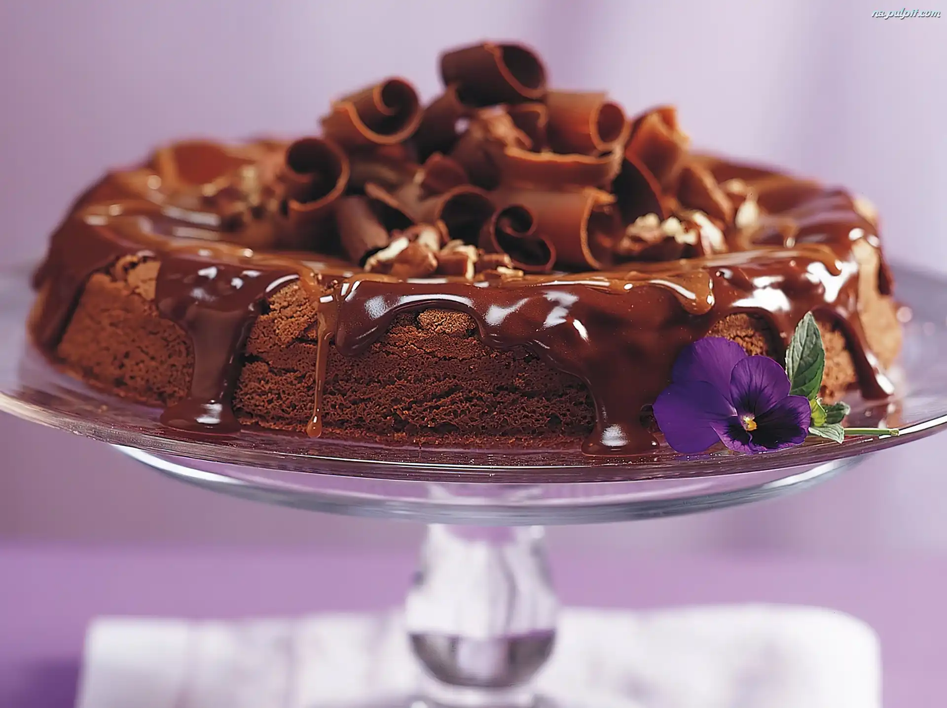 Kwiatek, Czekoladowa, Polewa, Ciasto, Talerz Na Pulpit