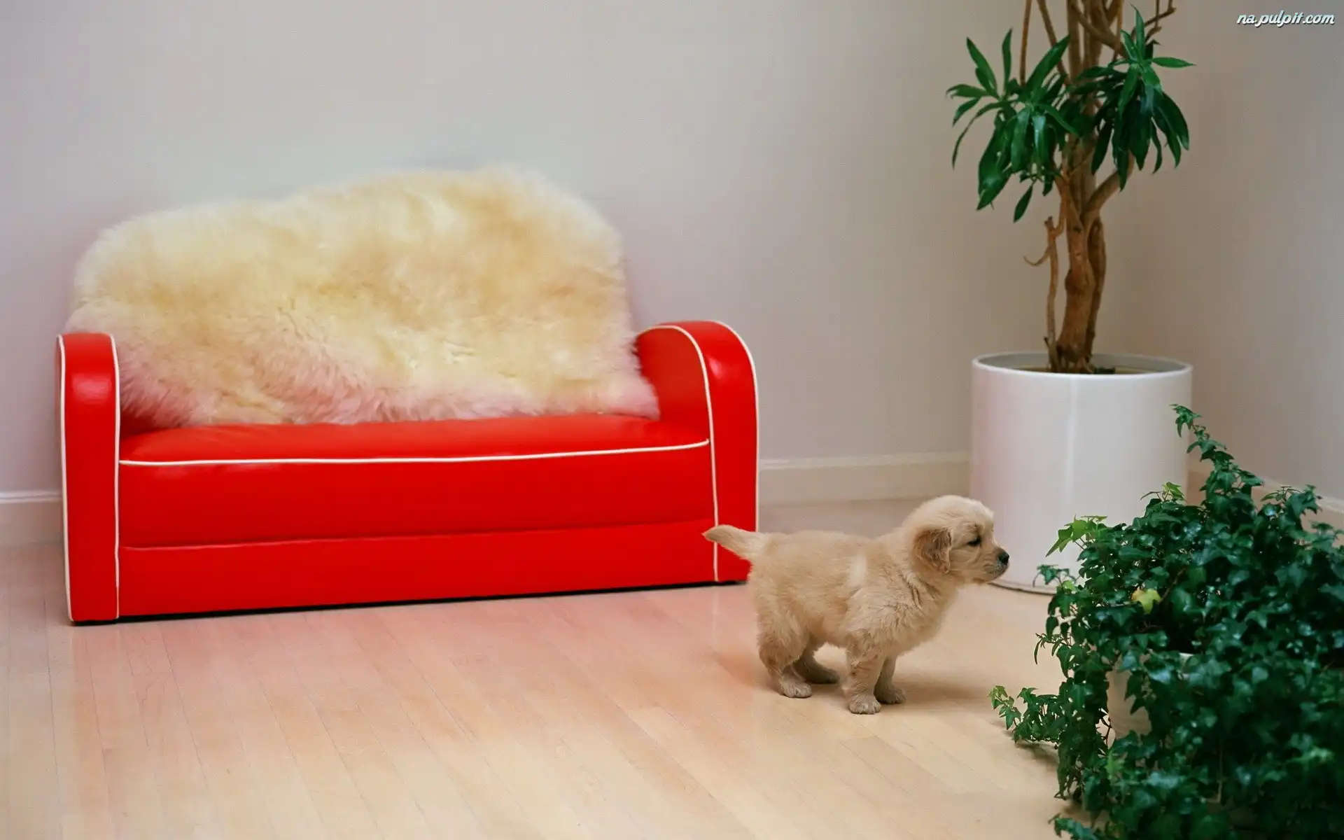 Kwiatek, Podłoga, Szczeniak, Mały, Sofa