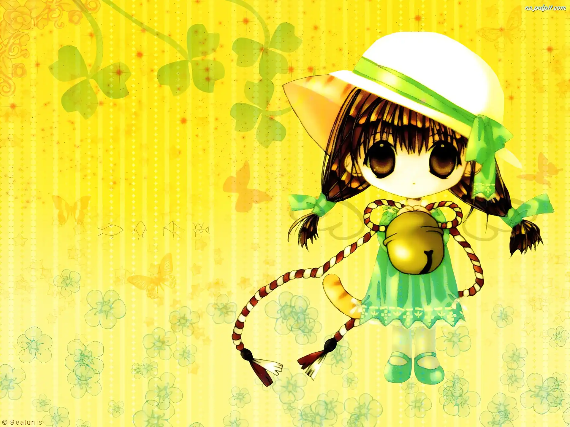 kwiatki, kapelusz, dziewczynka, Digi Charat, dzwonek Na Pulpit