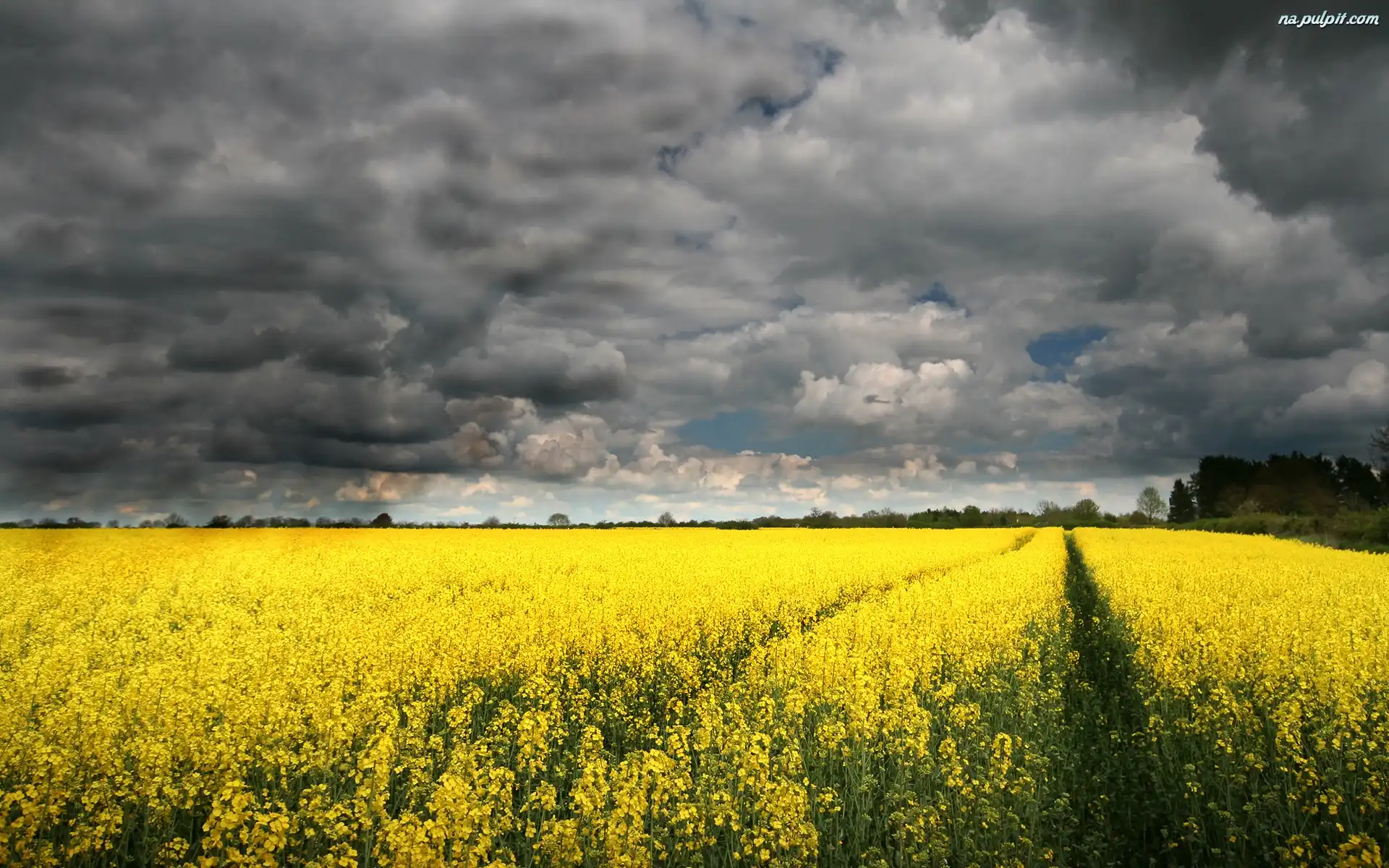 Kwiatki, Łąka, Chmury, Żółte Na Pulpit