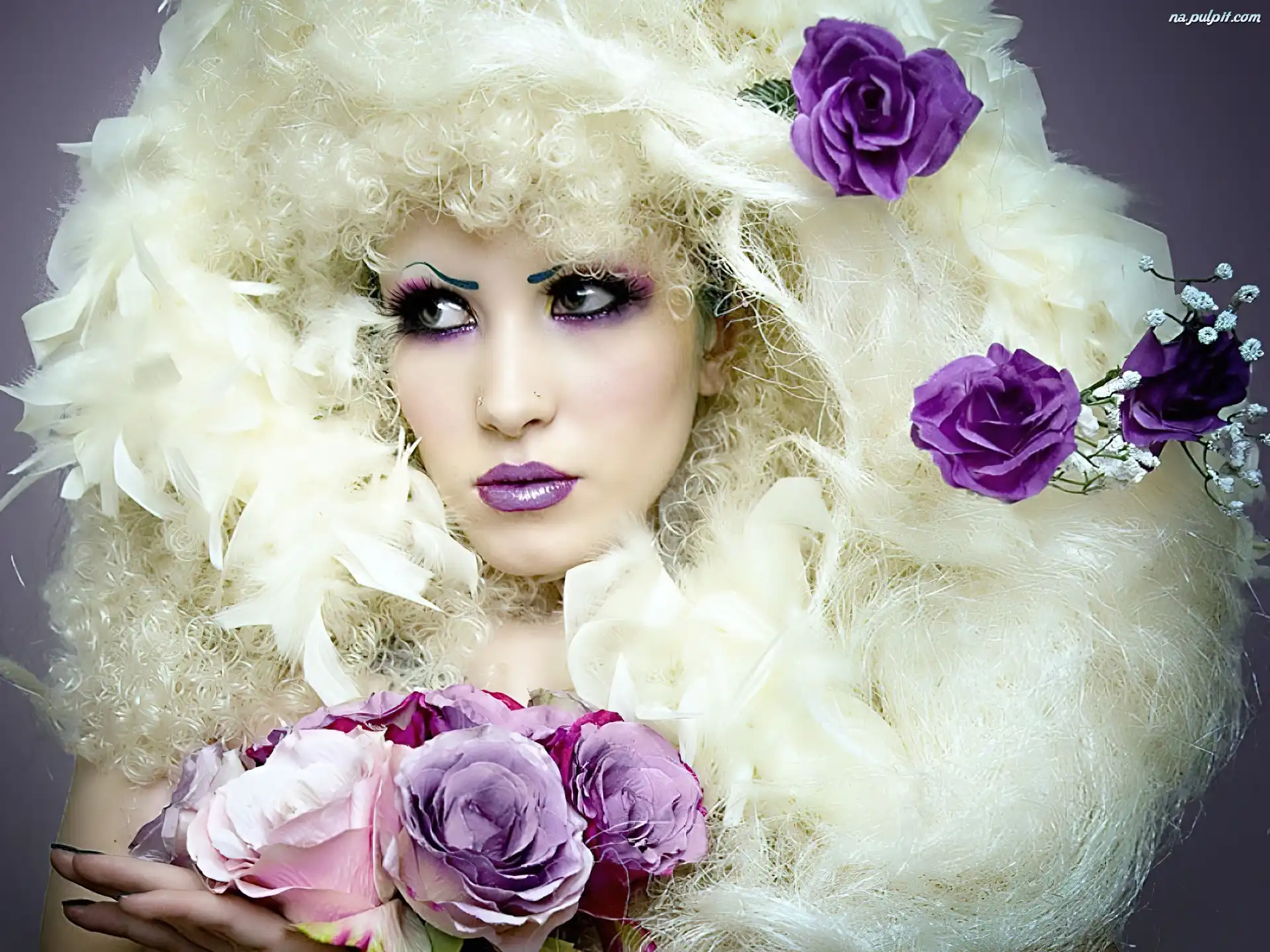 Kwiatki, Makijaż, Dziewczyna, Purpurowe Na Pulpit