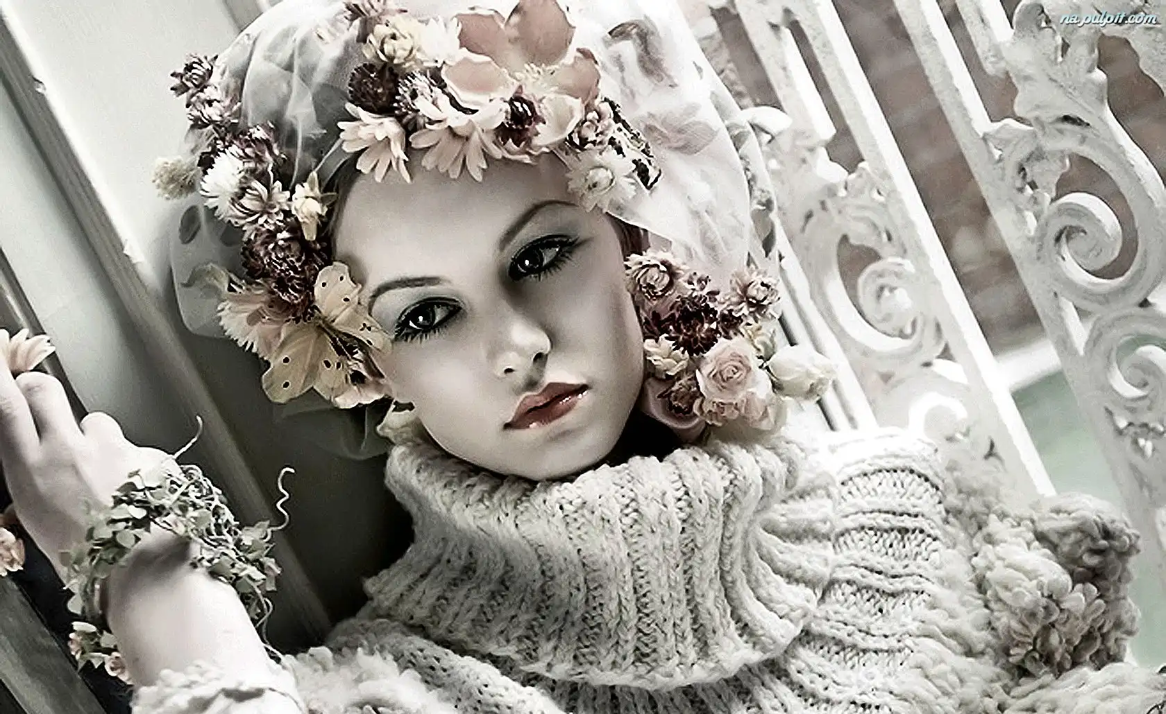 Kwiatki, Makijaż, Kobieta, Golf