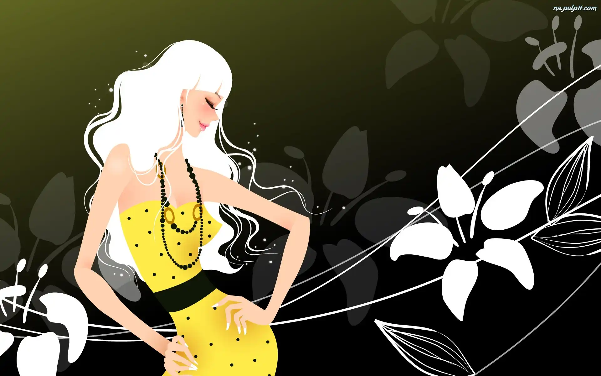 Kwiatki, Suknia, Żółta, Kobieta, Białe Na Pulpit