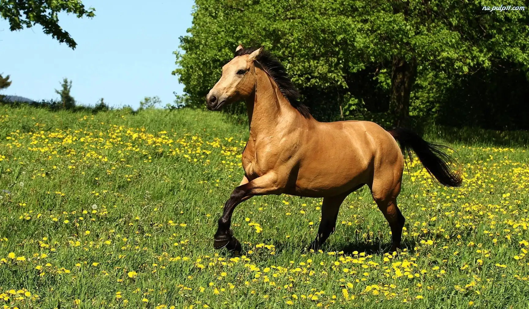Kwiatki, Łąka, Bieg, Koń, Żółte