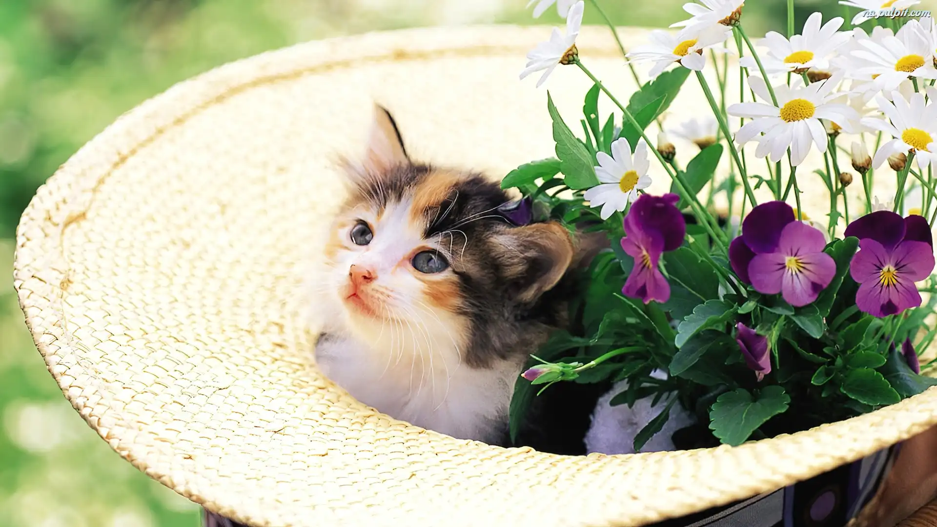 Kwiatki, Kotek, Mały, Kapelusz Na Pulpit