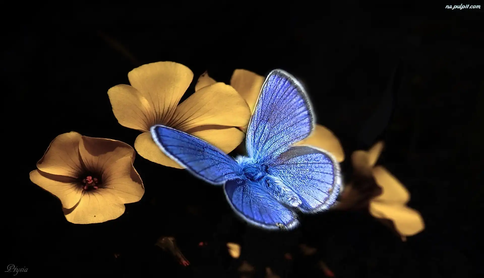Kwiatki, Motyl modraszek, Niebieski, Żółte Na Pulpit