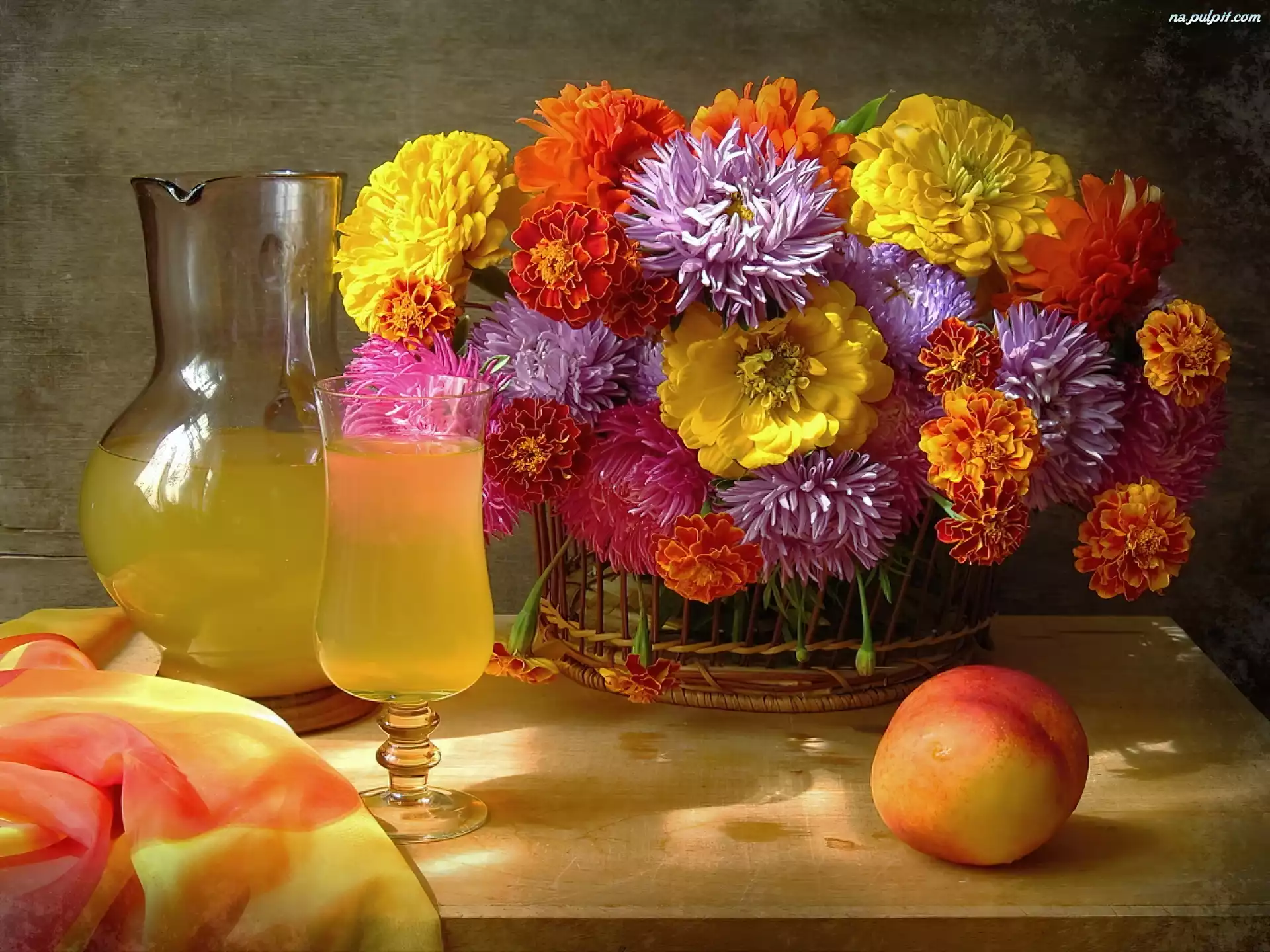 Kwiatów, Pomarańczowo, Żółto, Bukiet, Fioletowych Na Pulpit