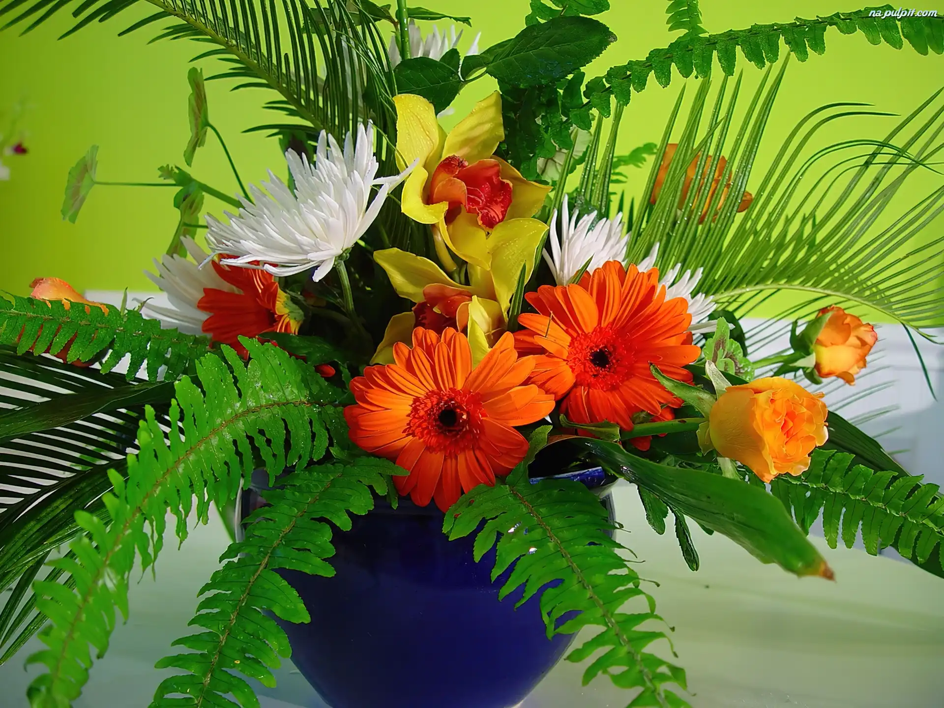 Bukiet, Gerbery, Róże, Kwiatów, Storczyk Na Pulpit