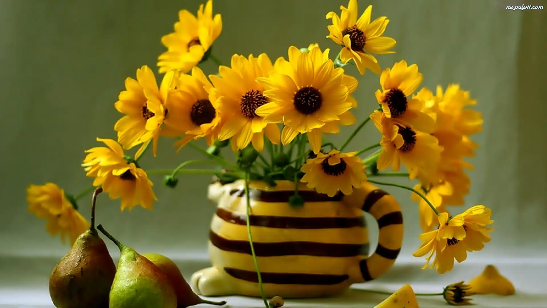 Kwiatuszki, Gruszki, Paski, Dzbanek, Żółte Na Pulpit