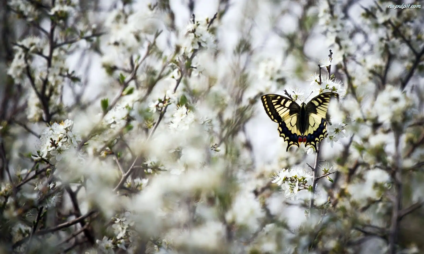 Kwiatuszki, Gałązki, Motyl, Białe Na Pulpit