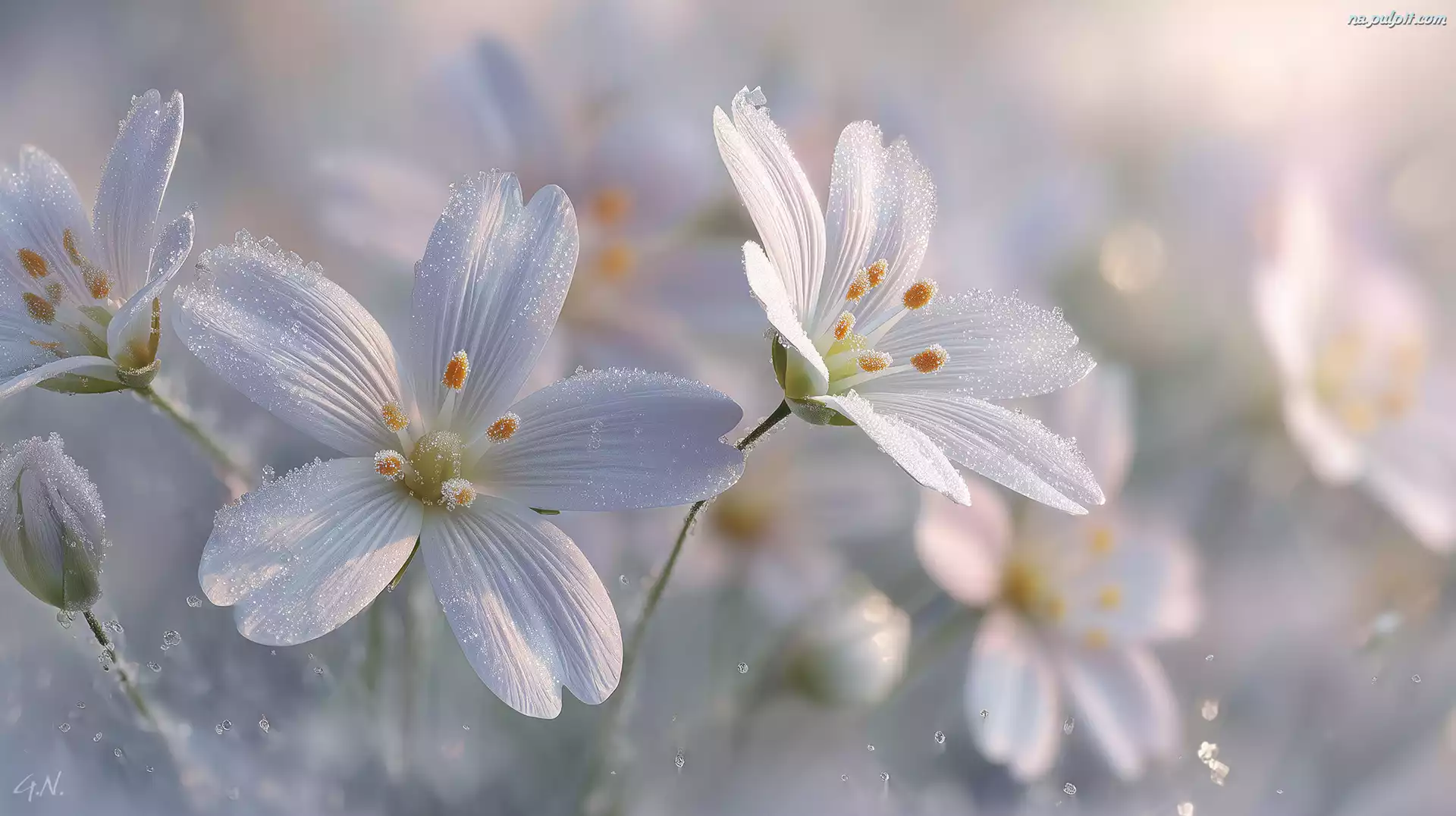 Rogownica polna, Szron, Kwiaty, Grafika AI Na Pulpit