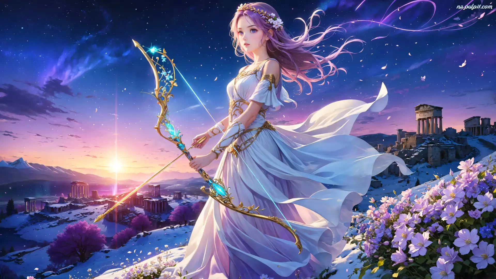 Anime, Dziewczyna, Łuk, Kwiaty Na Pulpit