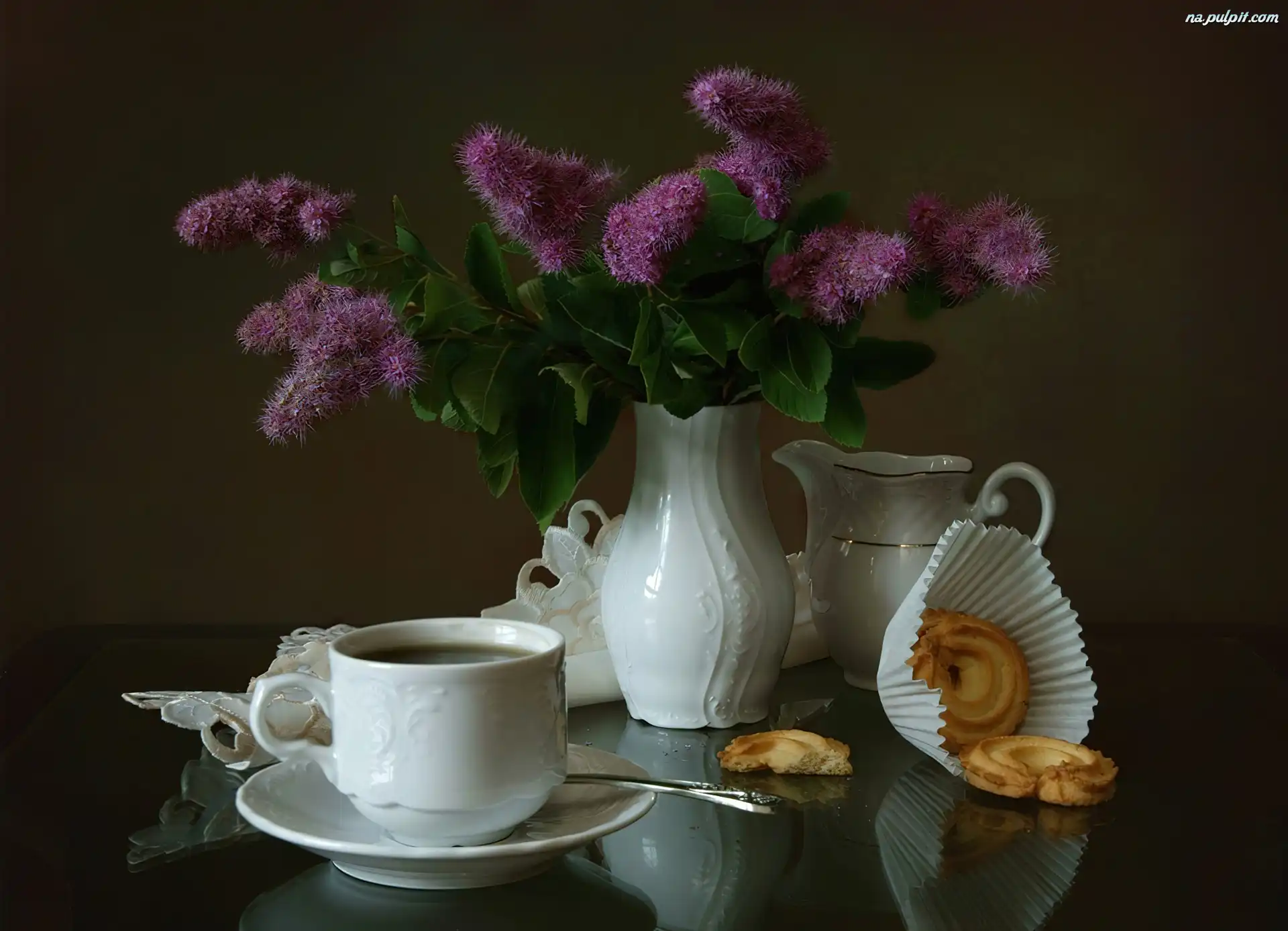 Kwiaty, Porcelana, Biała, Fioletowe Na Pulpit