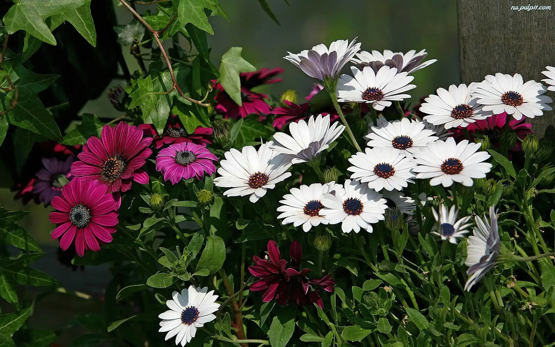 Stkrotki afrykańskie, Bordowe, Kwiaty, Białe Na Pulpit