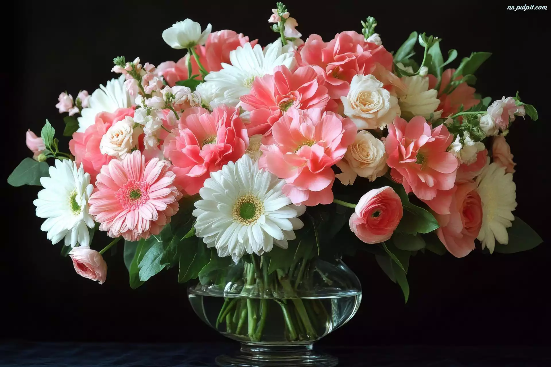 Bukiet, Kwiaty, Białe, Wazon, Różowe Na Pulpit