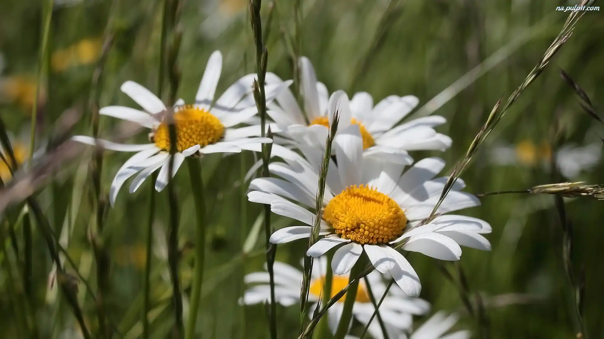 Trawa, Kwiaty, Białe, Źdźbła, Stokrotki Na Pulpit
