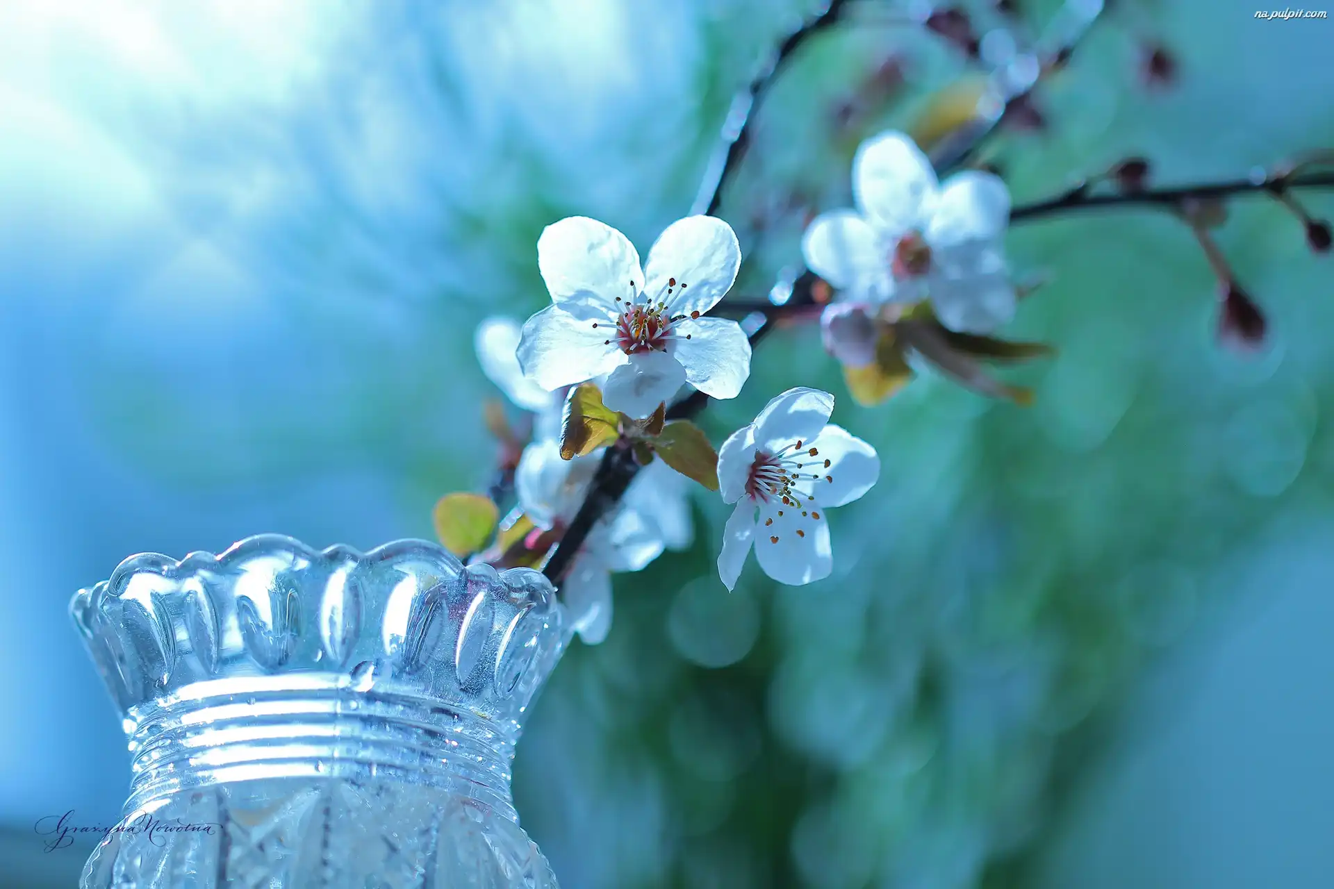 Kwiaty, Gałązka, Wazonik, Drzewo, Białe, Owocowe