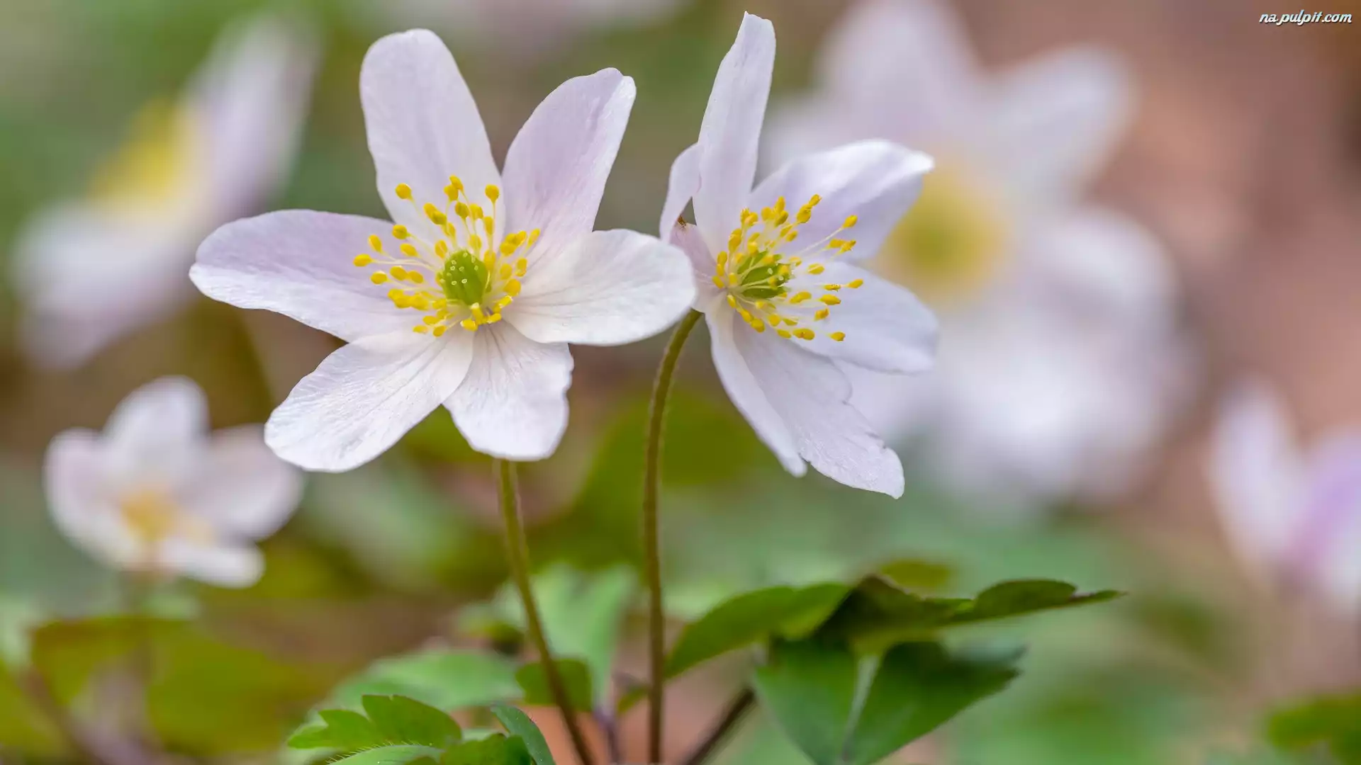 Liście, Kwiaty, Białe, Zbliżenie, Zawilce Na Pulpit