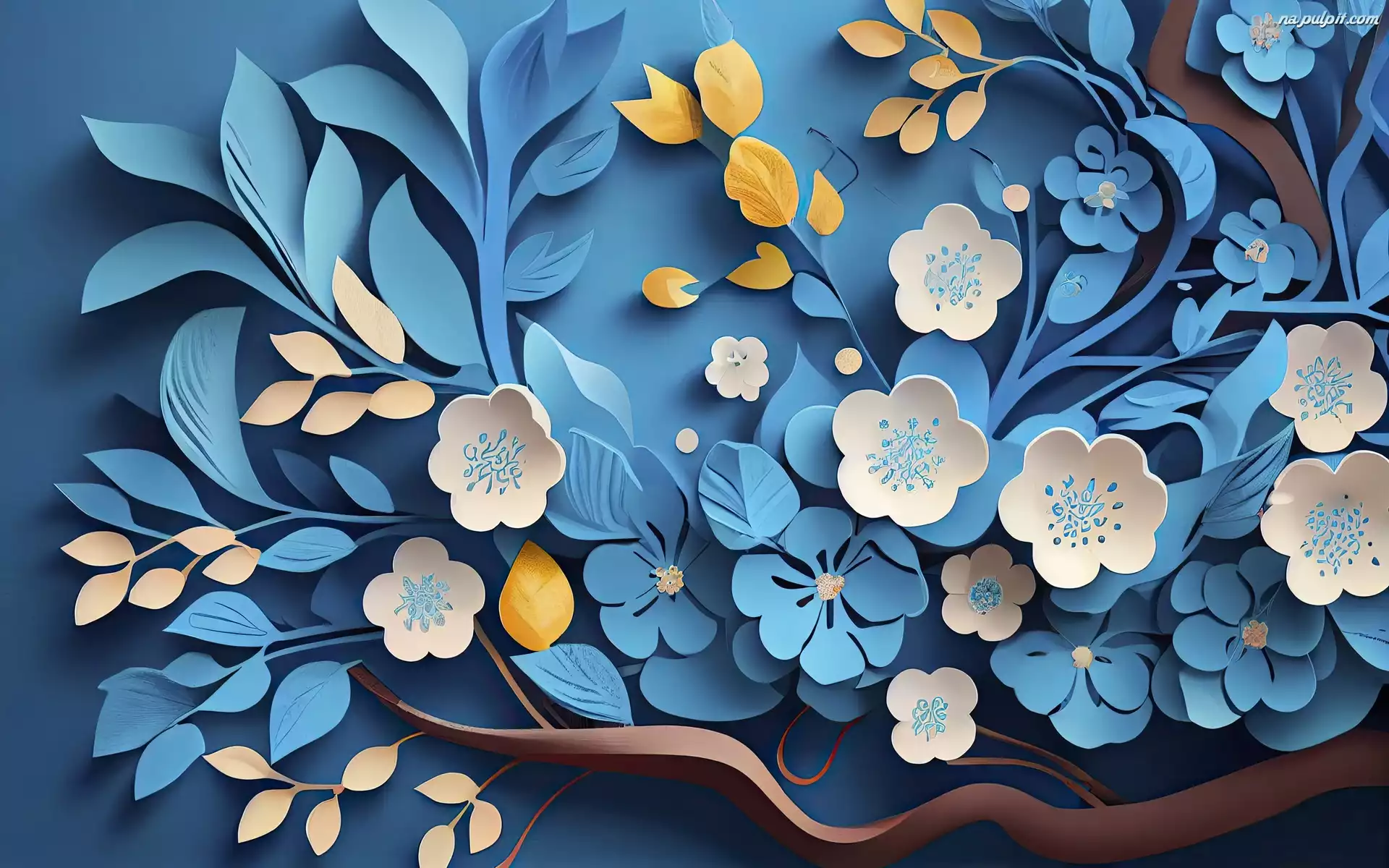 Biało-niebieskie, Grafika, Kwiaty Na Pulpit