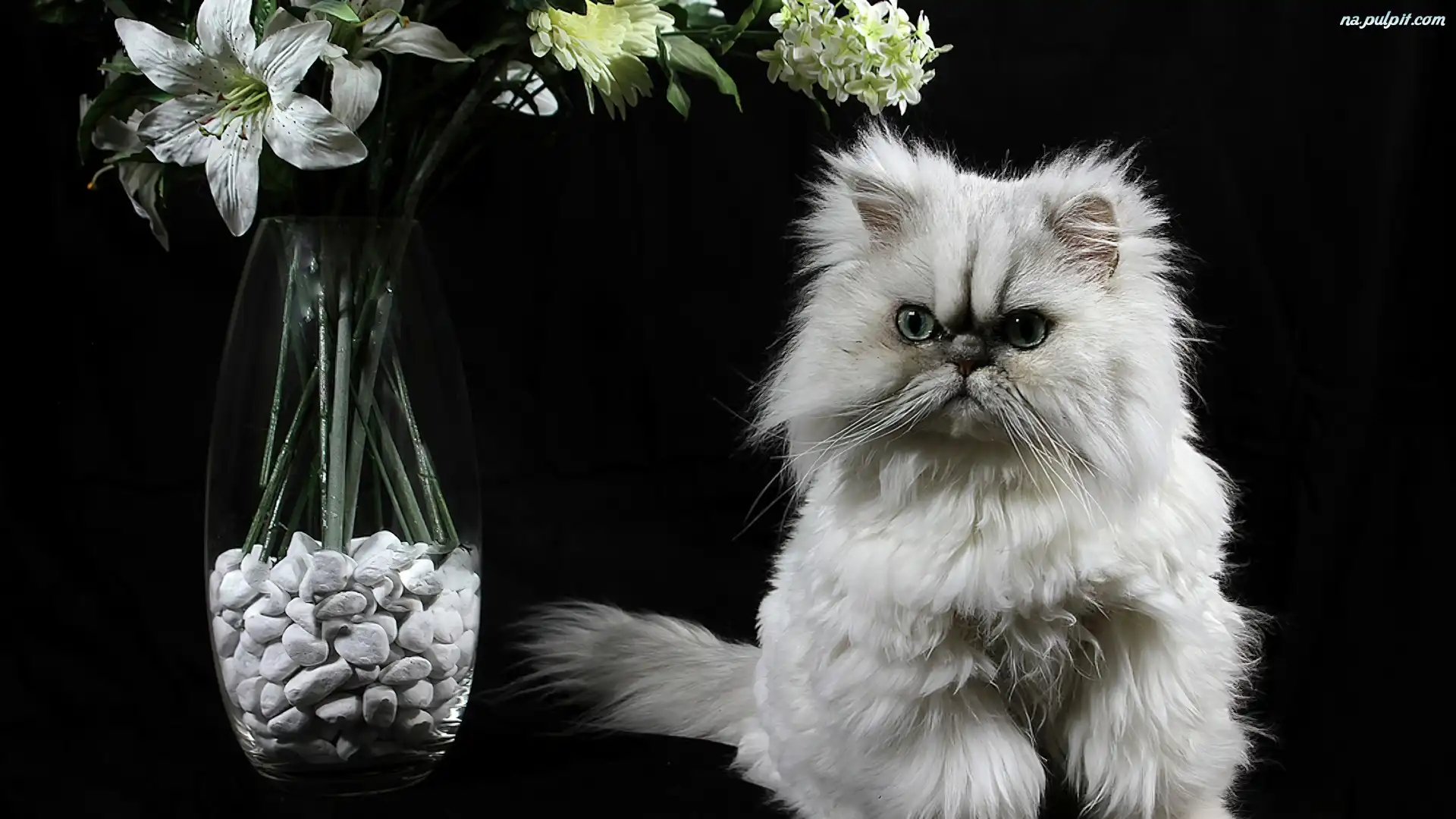 Kwiaty, Kotek, Biały, Wazon Na Pulpit