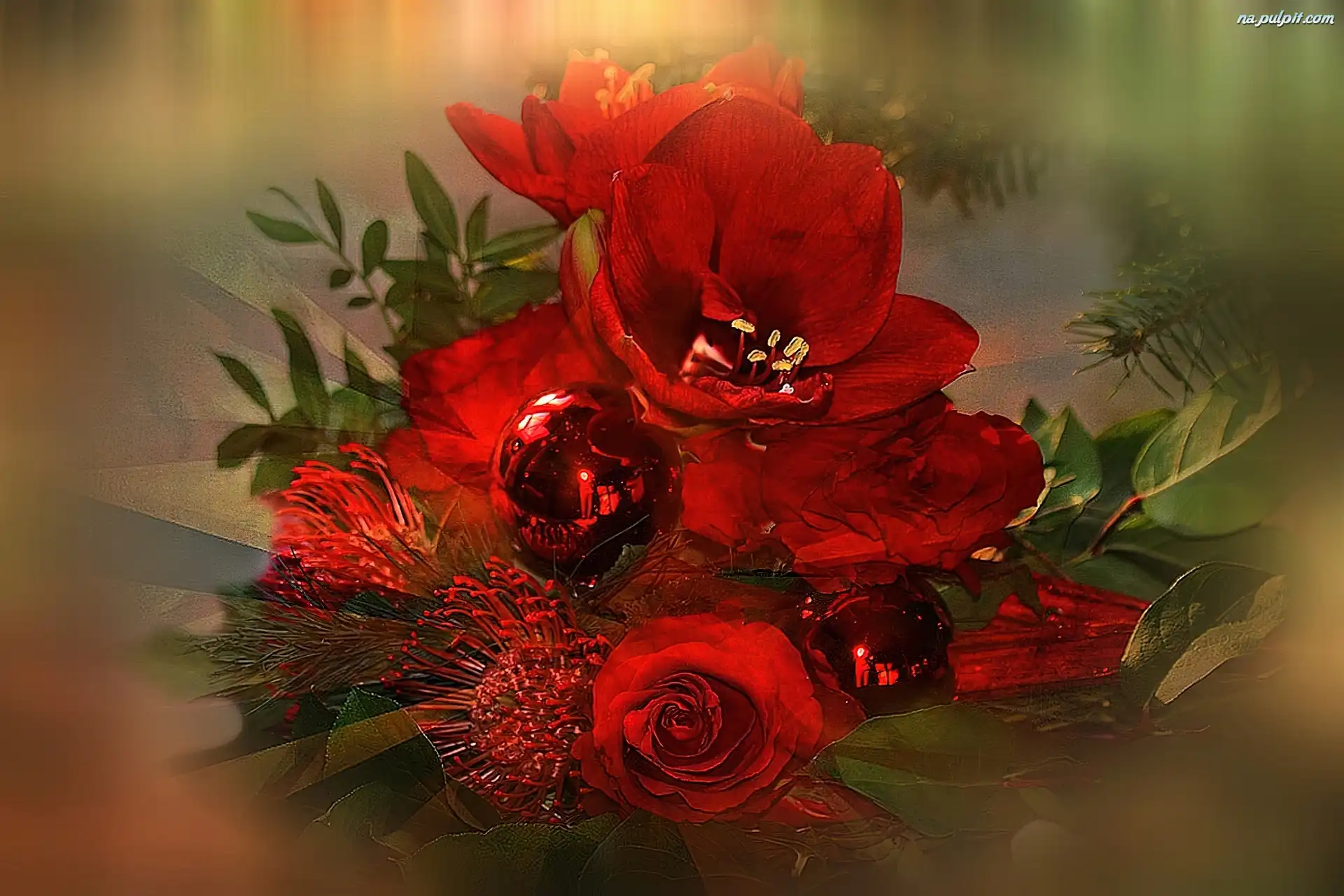 ÅšwiÄ…teczny, Bombka, Kwiaty, Stroik