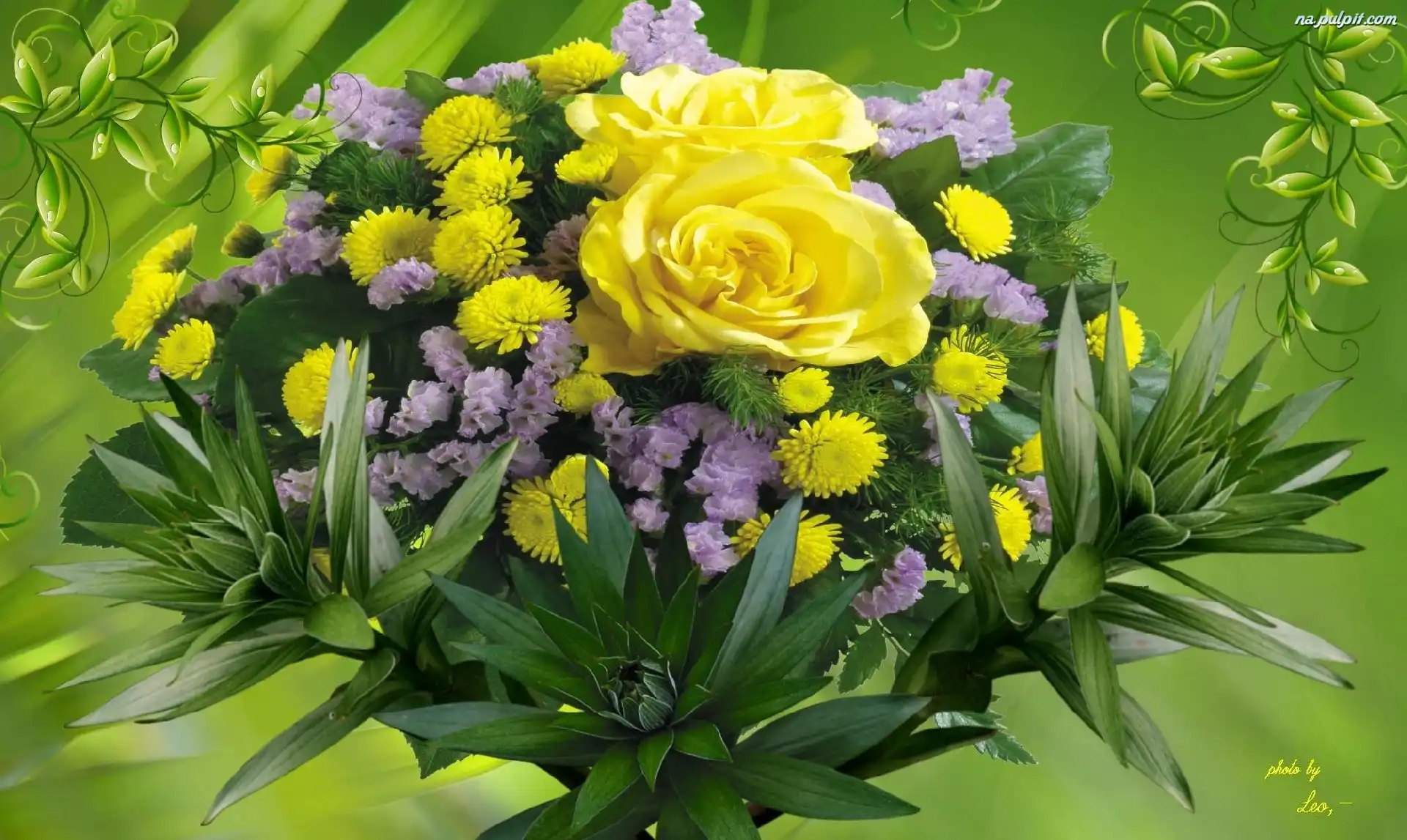 Bukiet, Kwiaty, Liście Na Pulpit