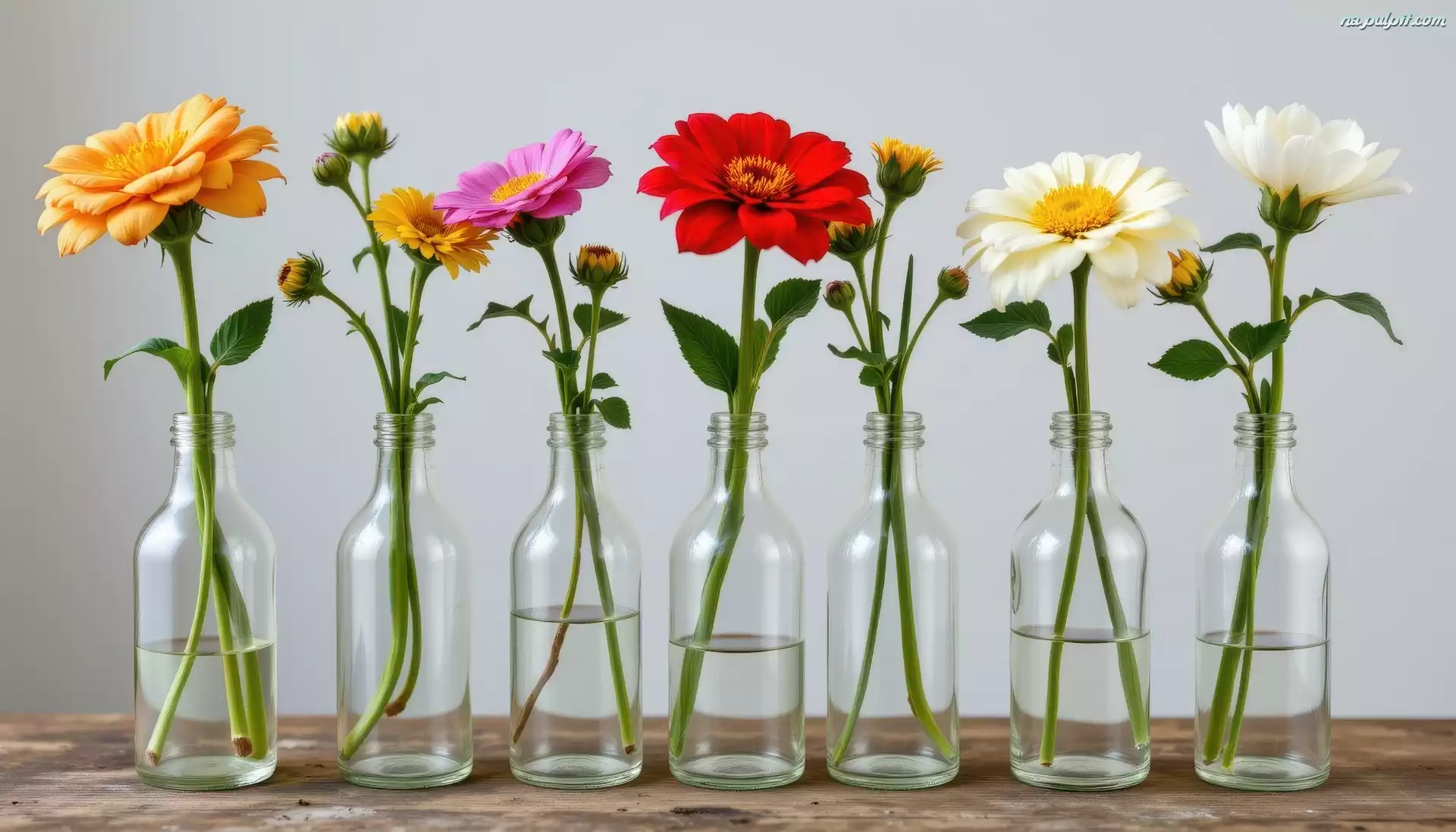 Kwiaty, Kolorowe, Butelki Na Pulpit