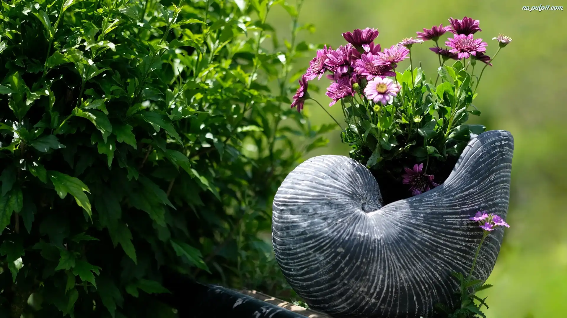 Kwiaty, Doniczka, Ceramiczna, Muszla