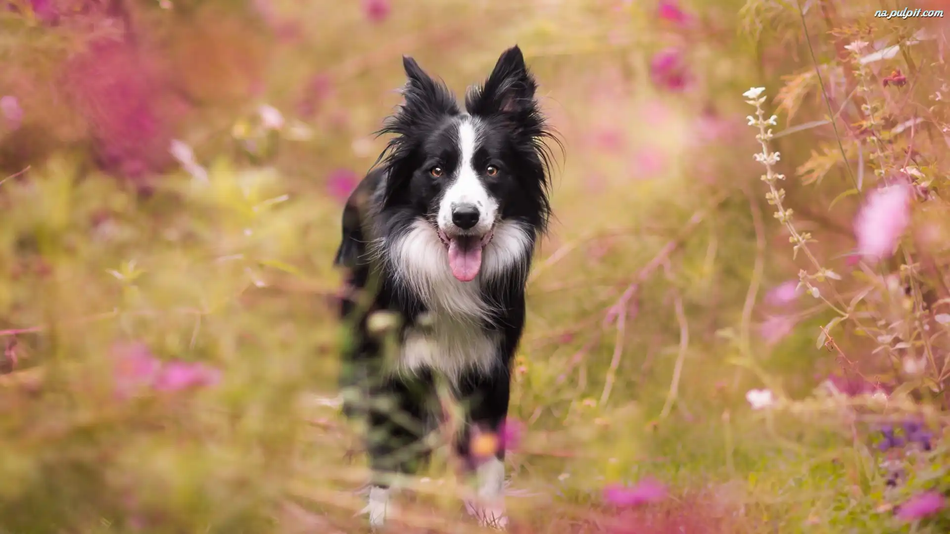Kwiaty, Border collie, Łąka Na Pulpit