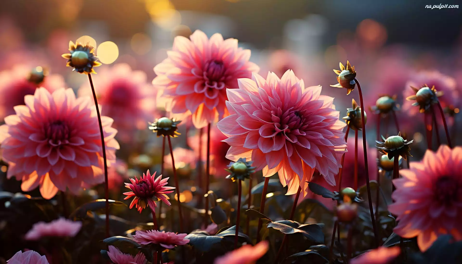 Pąki, Kwiaty, Dalie, Światło, Różowe Na Pulpit