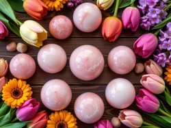 Tulipany, Różowe, Kolorowe, Kwiaty, Kule, Deski