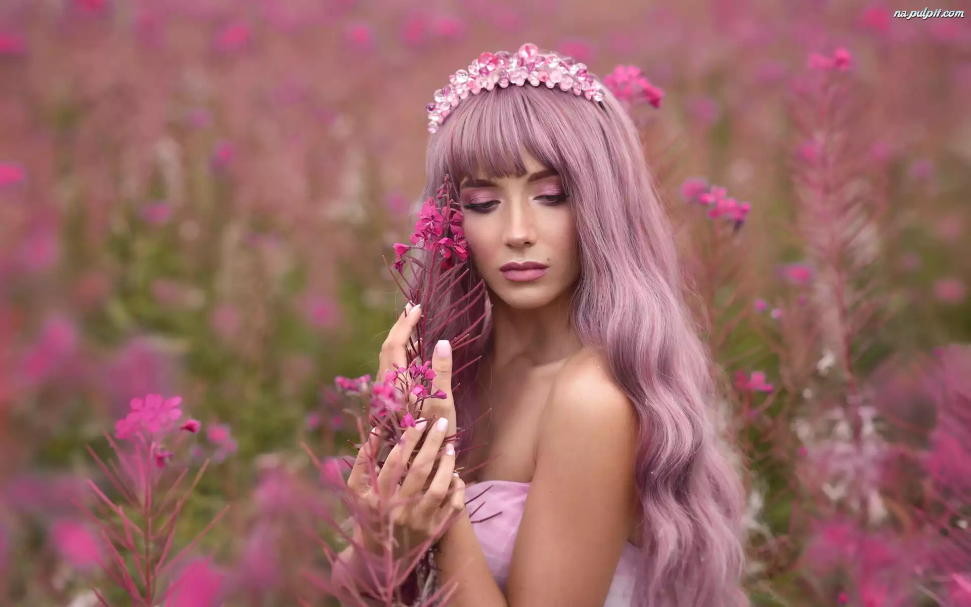 Makijaż, Dziewczyna, Włosy, Kwiaty, Długie, Diadem Na Pulpit
