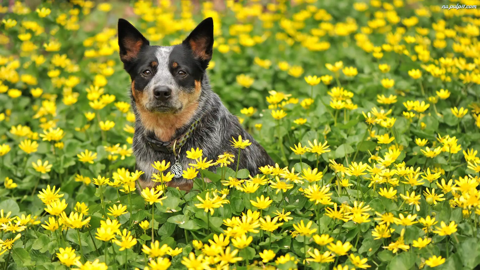 Kwiaty, Australian cattle dog, Łąka Na Pulpit