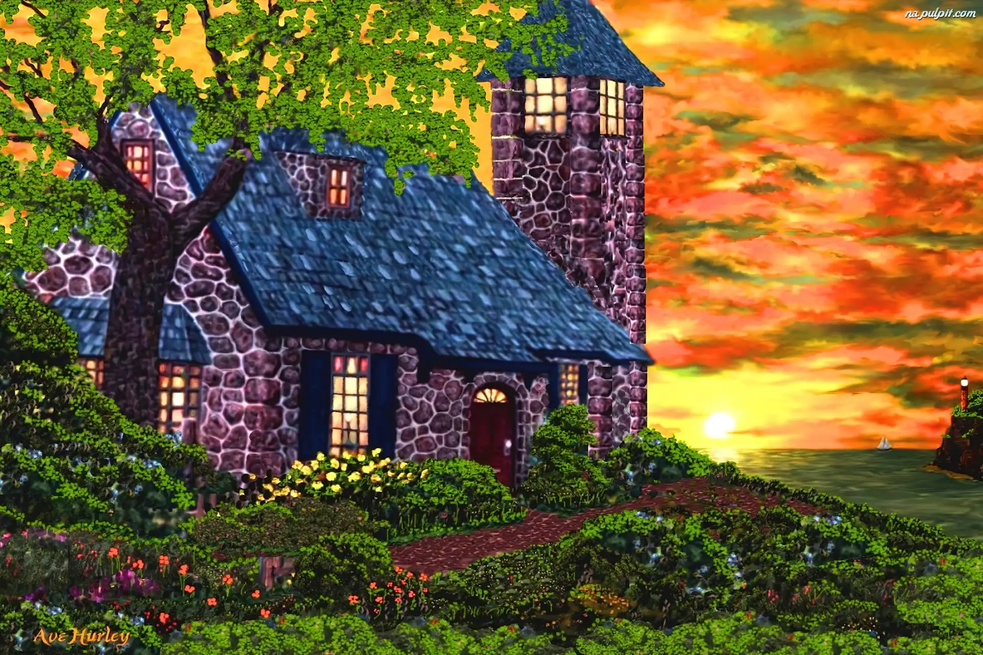 Kwiaty, Wieża, Dom, Ogród Na Pulpit