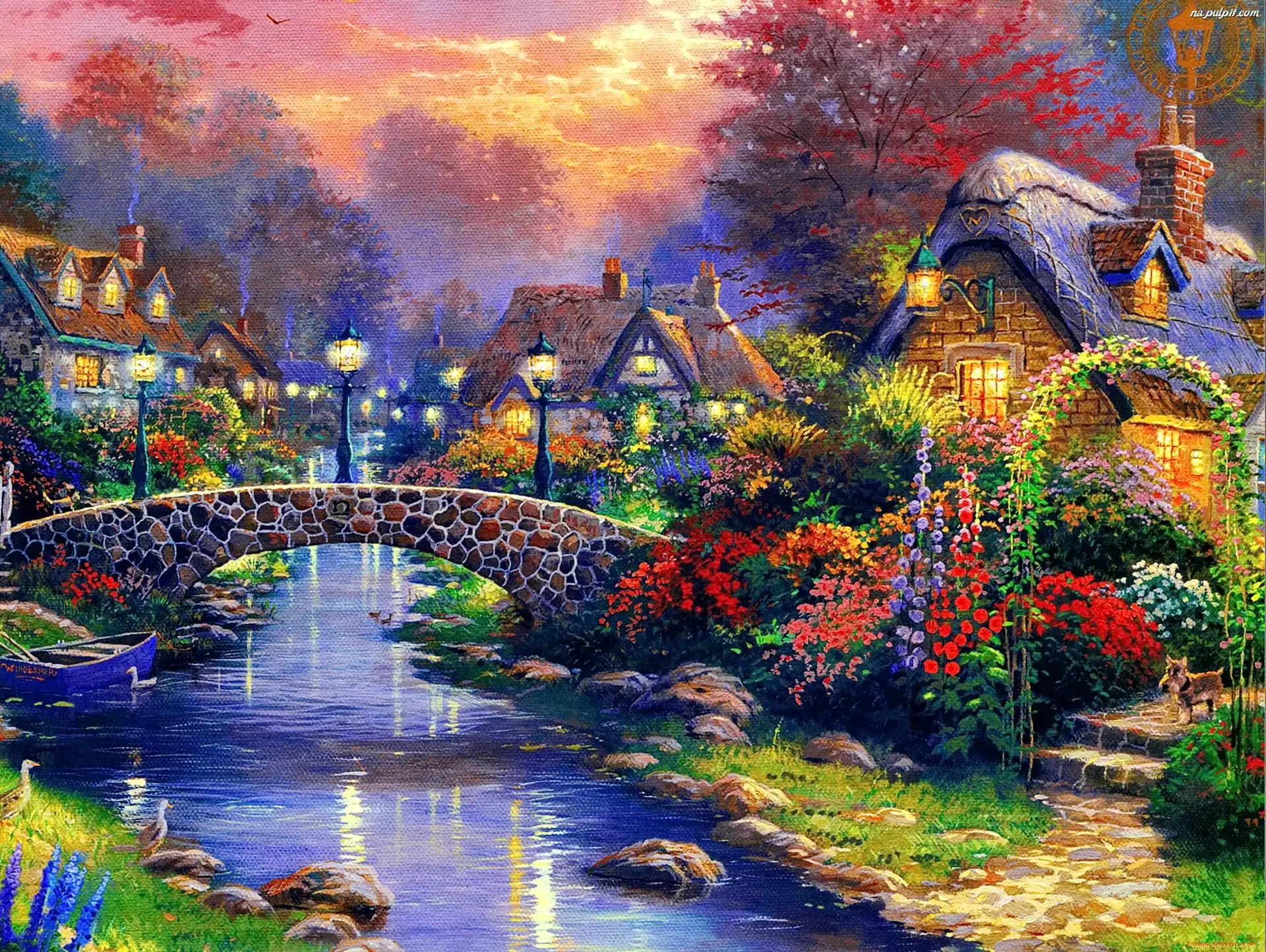 Kwiaty, Most, Domy, Rzeka Na Pulpit
