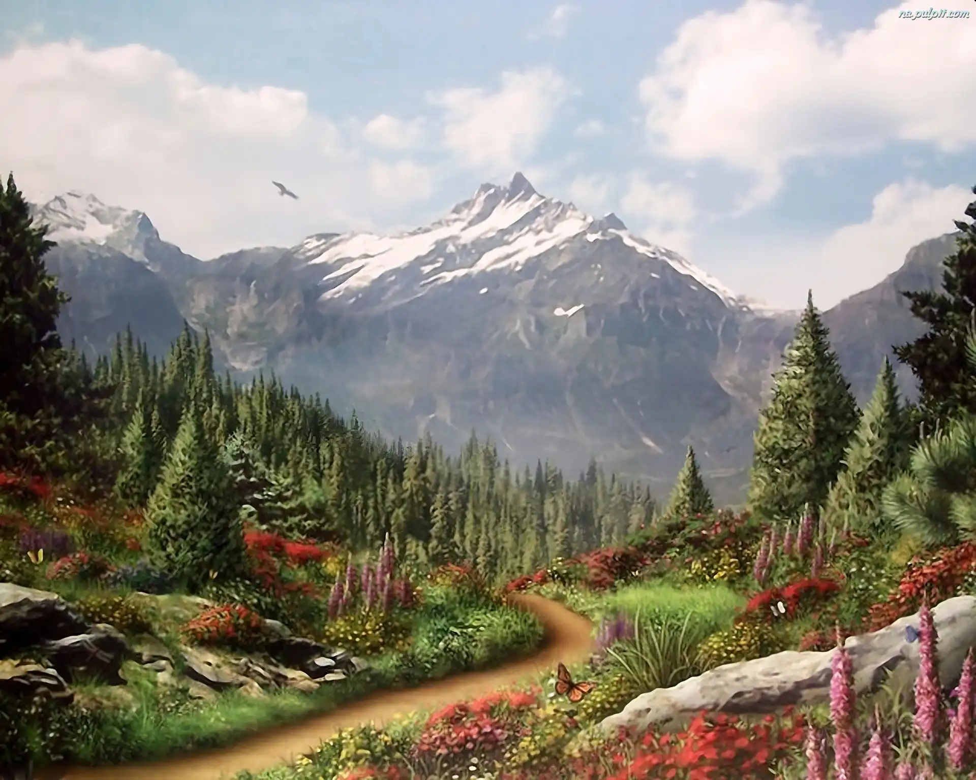 Kwiaty, Góry, Droga, Łąka Na Pulpit