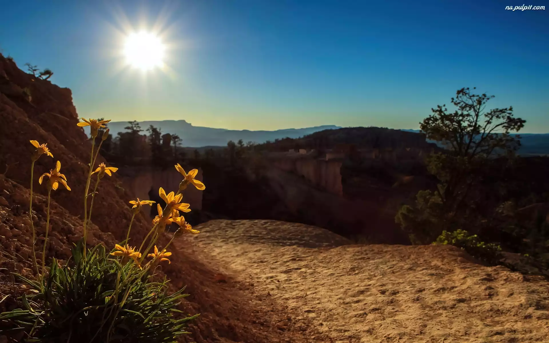 Kwiaty, Słońca, Promienie, Droga, Góry Na Pulpit